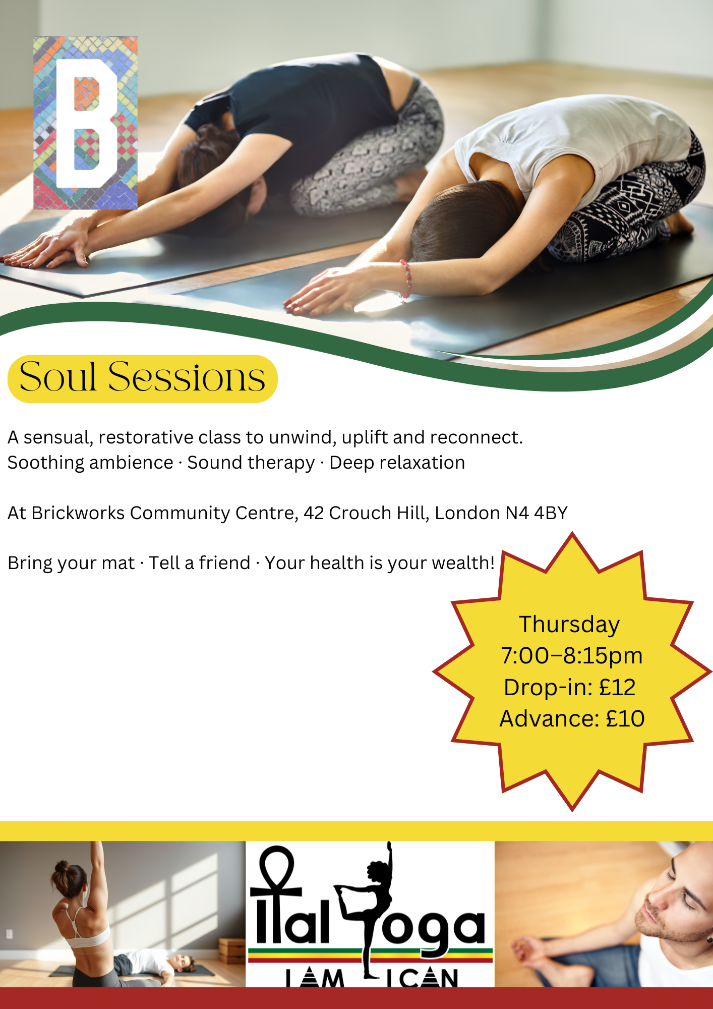 Bring your mat · Tell a friend · Your health is your wealth!